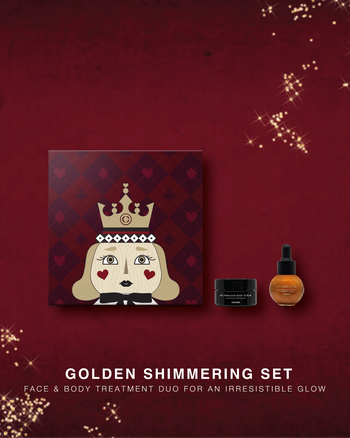 Zoek je een feestelijk cadeau dat pure glamour uitstraalt? De Golden Shimmering Set is de ultieme verrassing onder de boom. Van subtiele shimmer tot full-on partyglow: deze set verwent de huid én prikkelt de zintuigen. De bodyscrub maakt de huid zijdezacht, terwijl de voedende olie een satijnachtige glow achterlaat. Perfect als cadeau voor iemand die houdt van dat beetje extra sparkle - of om jezelf te trakteren op een dagelijkse dosis glamour.
